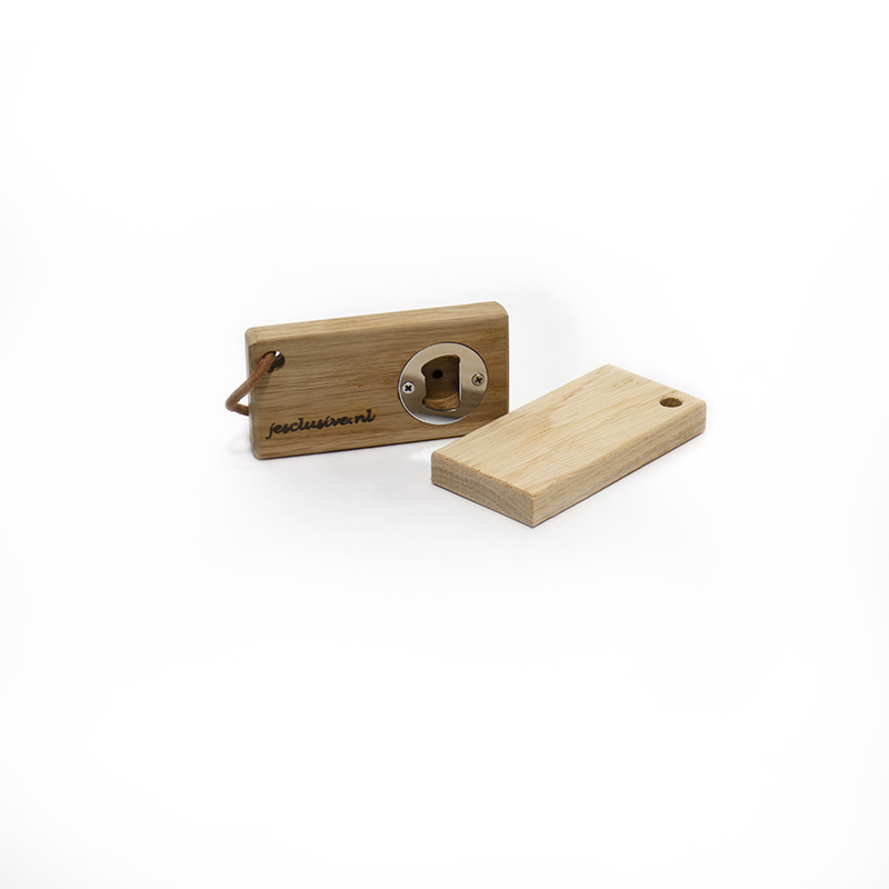 Deze Eikenhouten flesopener is handgemaakt.